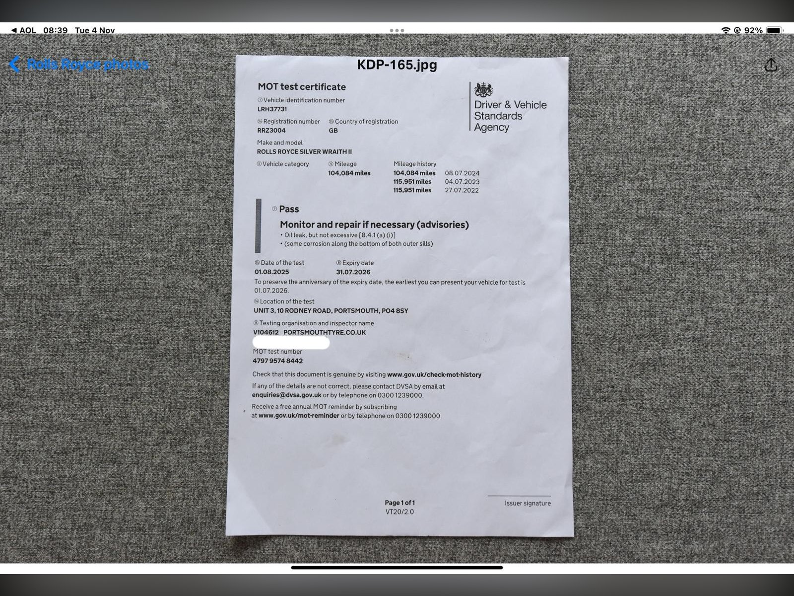 LOVELY EXAMPLE - Rolls Royce Silver Shadow. Service history. Drives well. Great registration number. Not the usual rubbish. All major debit and credit cards accepted